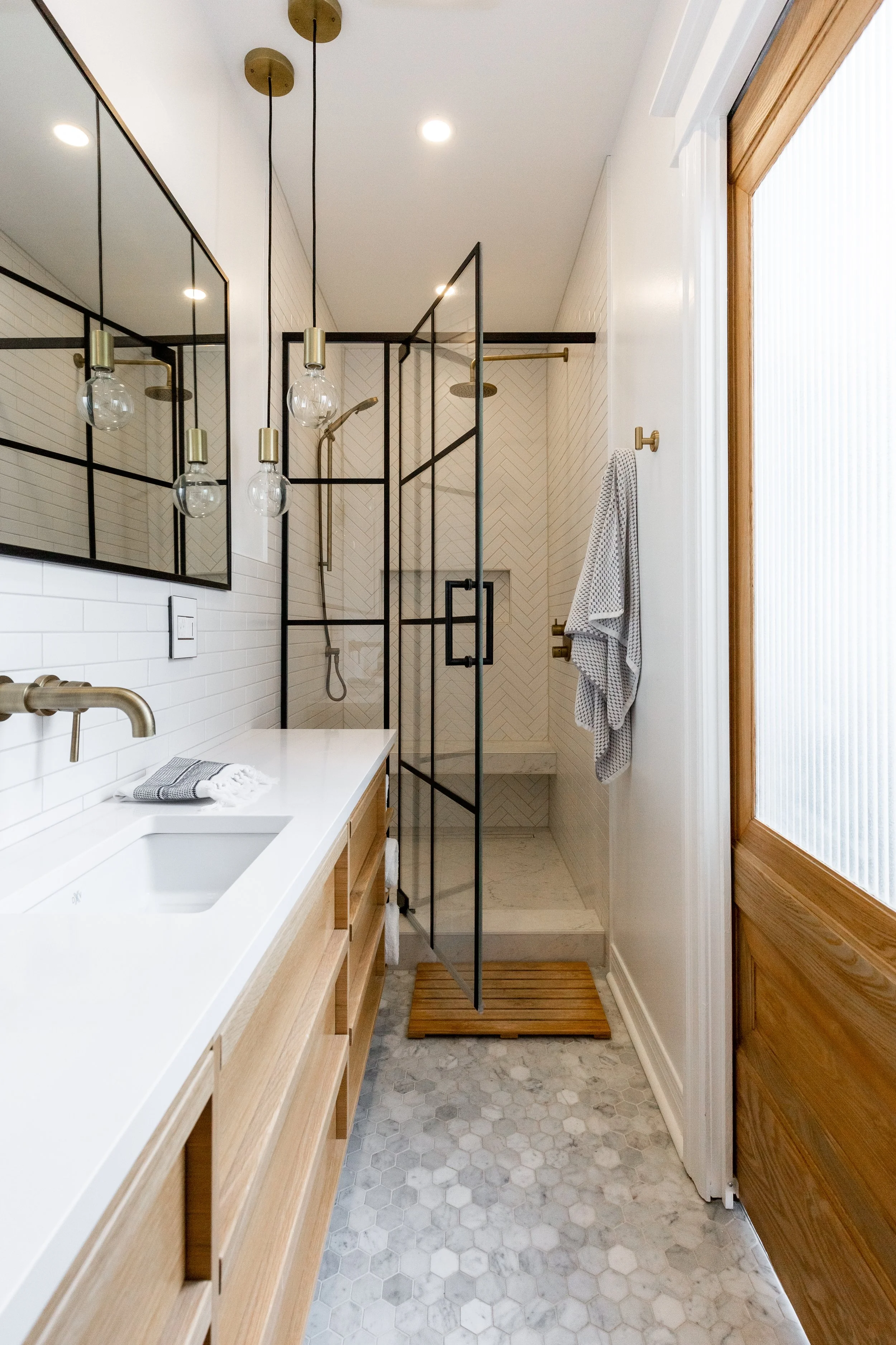 Afin de poursuivre dans la belle lignée des récentes rénovations, la designer et l’entrepreneur d’origine ont remis la main à la pâte avec nous pour cette nouvelle phase des travaux. Une partie du logement à l’étage a été redonnée aux propriétaires occupants afin de leur créer une nouvelle suite parentale à faire rêver.